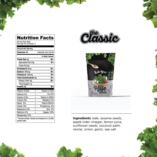 We believe that the best snacks start with the best ingredients. That's why we source the freshest, locally-grown, Organic kale and use only real, natural ingredients to craft our chips.