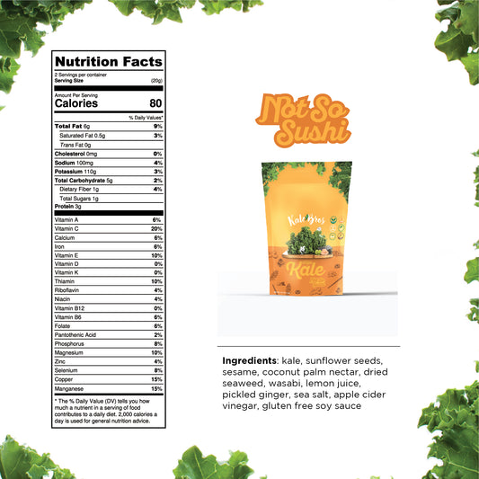 Our kale chips are, and always will be, made with Organic Kale, Vegan, gluten-free, non-GMO, nut-free and raw; dehydrated at low temperatures to retain Kale's nutrient rich goodness!